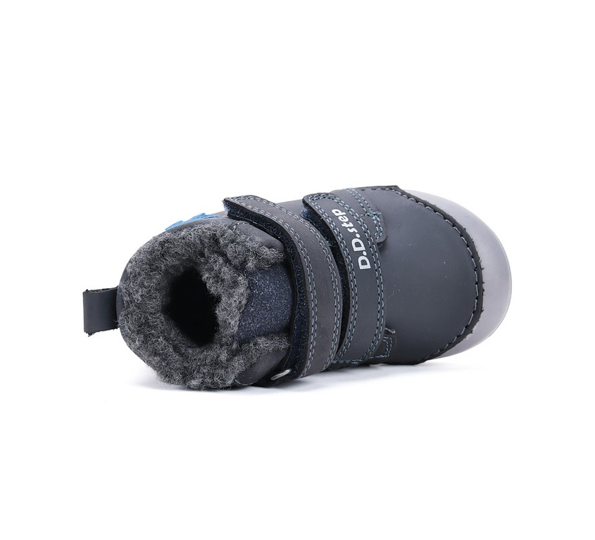 D.D.Step 2 tépőzáras, sötétkék színű, bélelt fiú cipő, oldalán dinó mintával