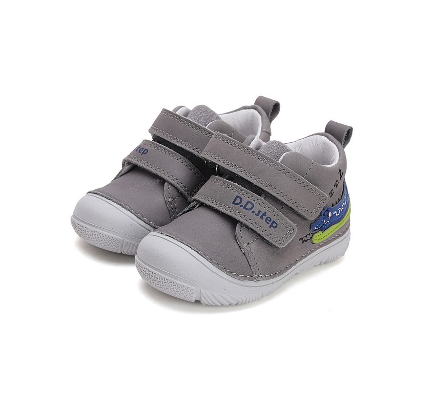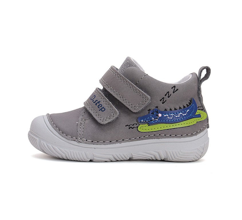 D.D.STEP két tépőzáras, szürke színű fiú cipő, oldalán krokodil mintával