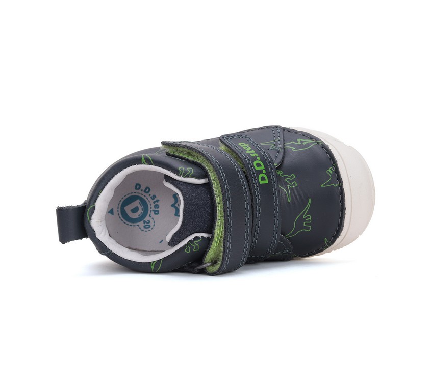 D.D.STEP két tépőzáras, sötétkék színű fiú cipő, oldalán dínó mintával