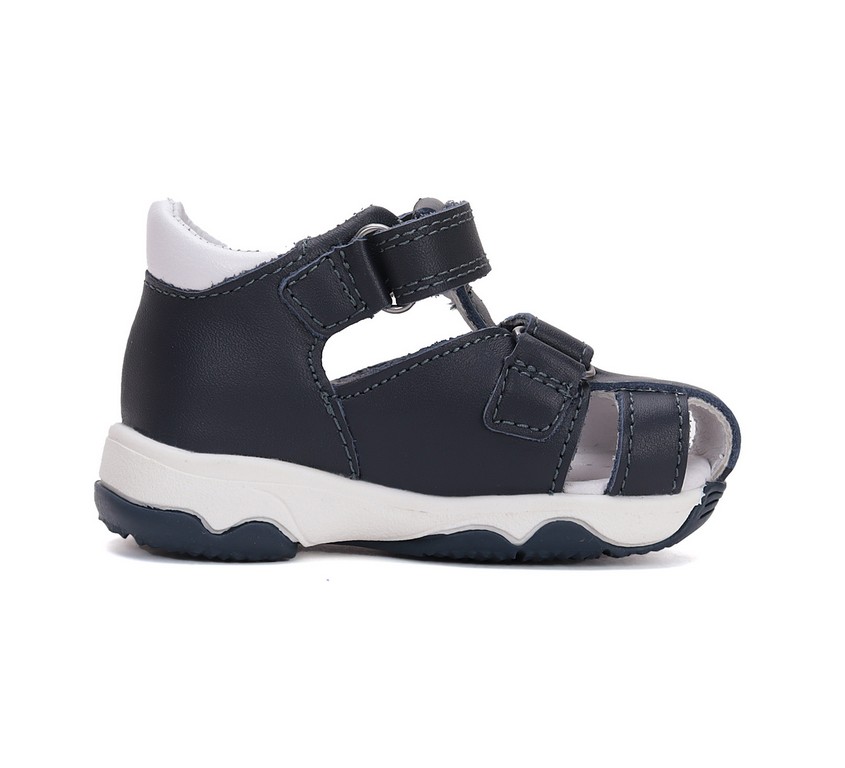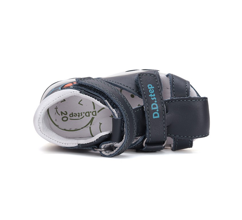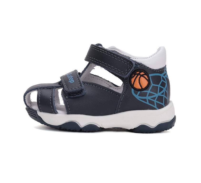 D.D.Step 2 tépőzáras, sötétkék színű, zárt kérgű fiú orrvédős szandál, oldalán kosárlabda mintával