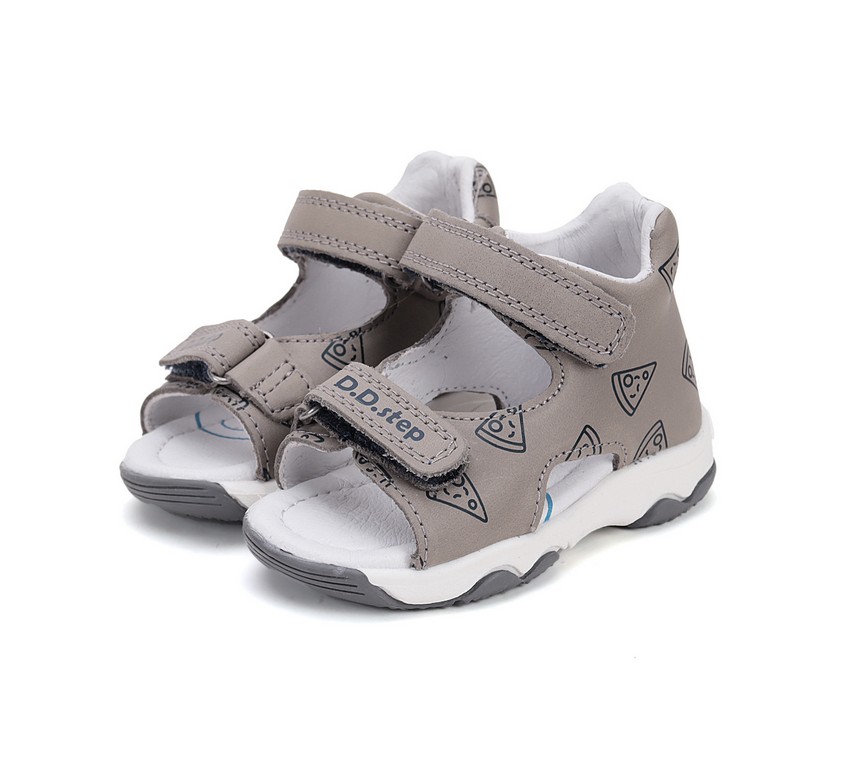 D.D.Step két tépőzáras, szürke színű, pizzaszelet mintás fiú szandál