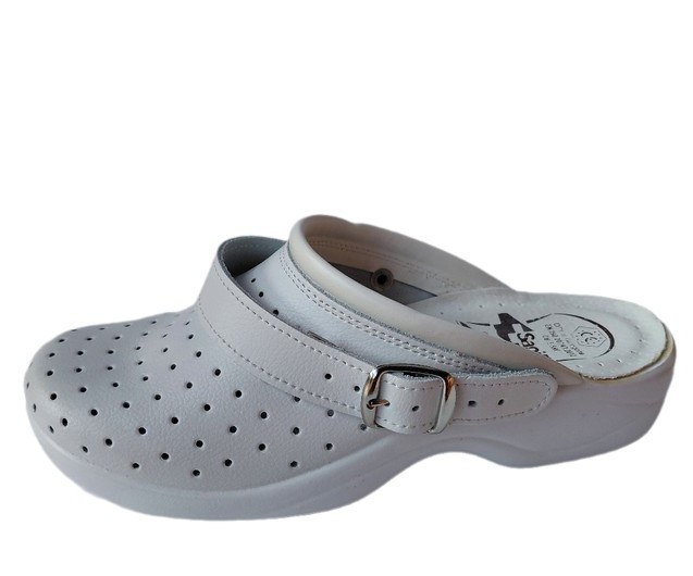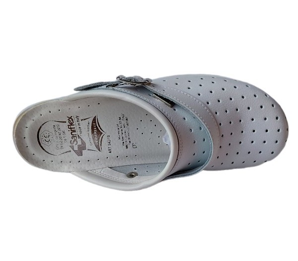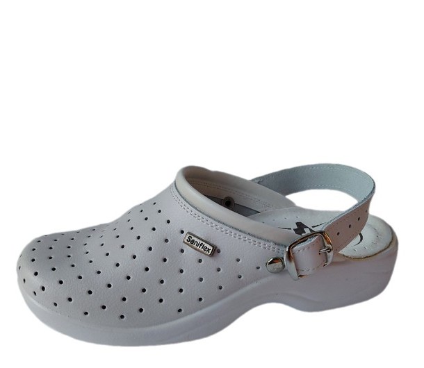 Saniflex női munkavédelmi fehér klumpa, hátrahajtható pánttal