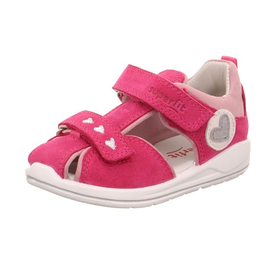 SUPERFIT orrvédős, 2 tépőzáras lány szandál, pink színben, külső oldalán szivecske mintával