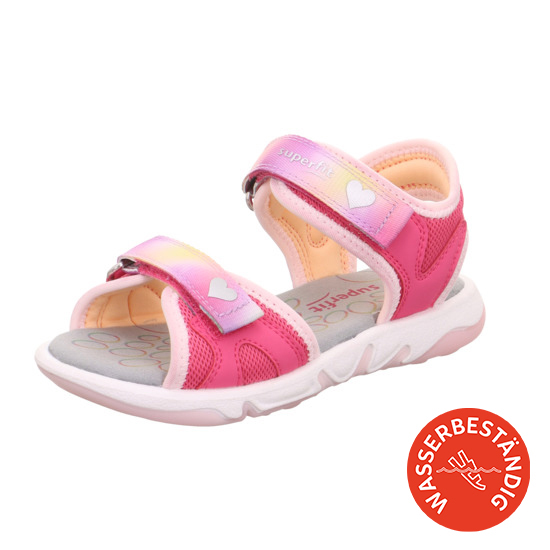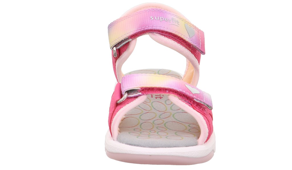 SUPERFIT 2 tépőzáras, hátul nyitott kérgű, pink színű, sportos lány szandál, mindkét tépőzár szivárvány színű