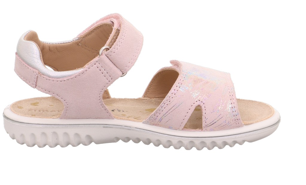 SUPERFIT 2 tépőzáras, hátul nyitott kérgű, rózsaszín lány szandál, első tépőzáron ezüst mintával