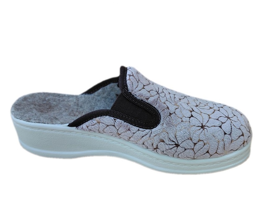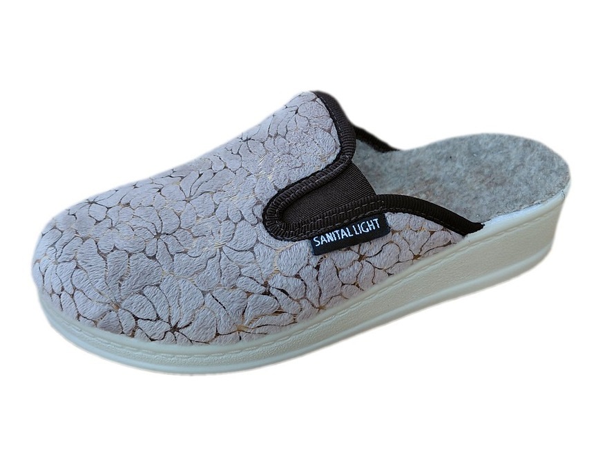 Sanital Light beige színű női mamusz, felsőrésze nyomott virágmintás